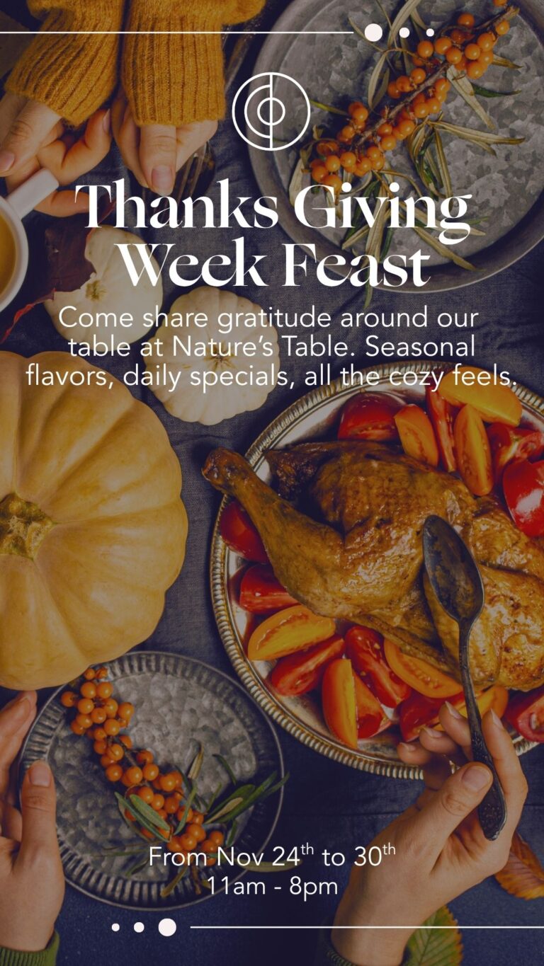 Nov 24th – 30th, 11am – 8pm Come share gratitude around our table at Nature’s Table.